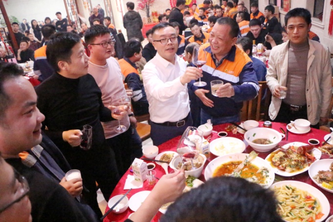 酒会伊始,沈亮致辞,他代表公司向关心和支持公司发展的各位嘉宾表示亲切的问候,向一年来在各工作岗位上认真谋划、亲力亲为的同事表示衷心的感谢,向在公司任劳任怨、为青山发展奉献十五余载的老员工们致以崇高的敬意。他指出:在青拓集团的正确领导下,公司通过引进先进设备、加强基础建设、合理整合资源、调整产品结构、提升产品附加值、加大产品开发力度等一系列有效措施,积极应对市场形势,与时俱进更新发展观念,进一步加快转型升级步伐,圆满地完成了2019年的工作任务,保持了良好的发展态势。成绩属于过去,未来催人奋进,伴随着2019年的完美收官,新时代的壮丽画卷正徐徐展开。展望新的一年,市场竞争愈加激烈,公司将面临更大的挑战,但是风险与机遇并存,希望公司全体员工继续发扬敢为人先、迎难而上的精神,秉承“奋起、争先、严谨、实干”的精神,再接再厉,继续开拓,为实现新的目标而奋斗,为青山的发展壮大做出更大的贡献!